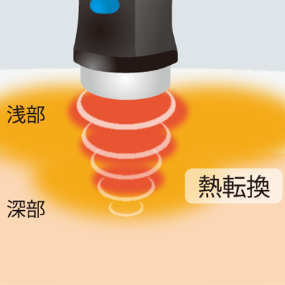1秒間に数百万回の振動にて深部に直接刺激を与え、超音波が届いている範囲を立体的に温めます。